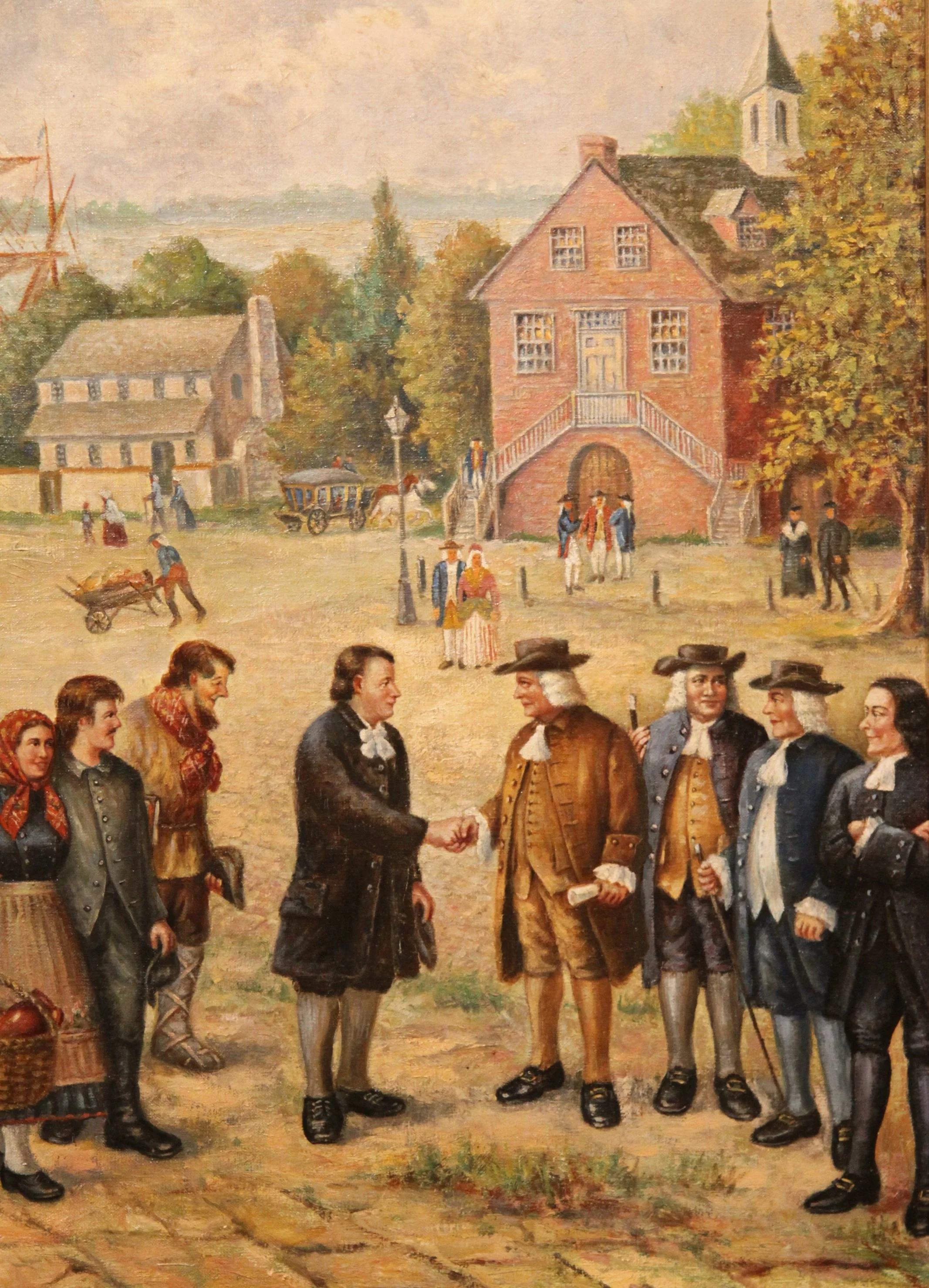 Weiss is depicted as the central figure on left in this twentieth-century painting of the Schwenkfelder Landing in Philadelphia in 1734